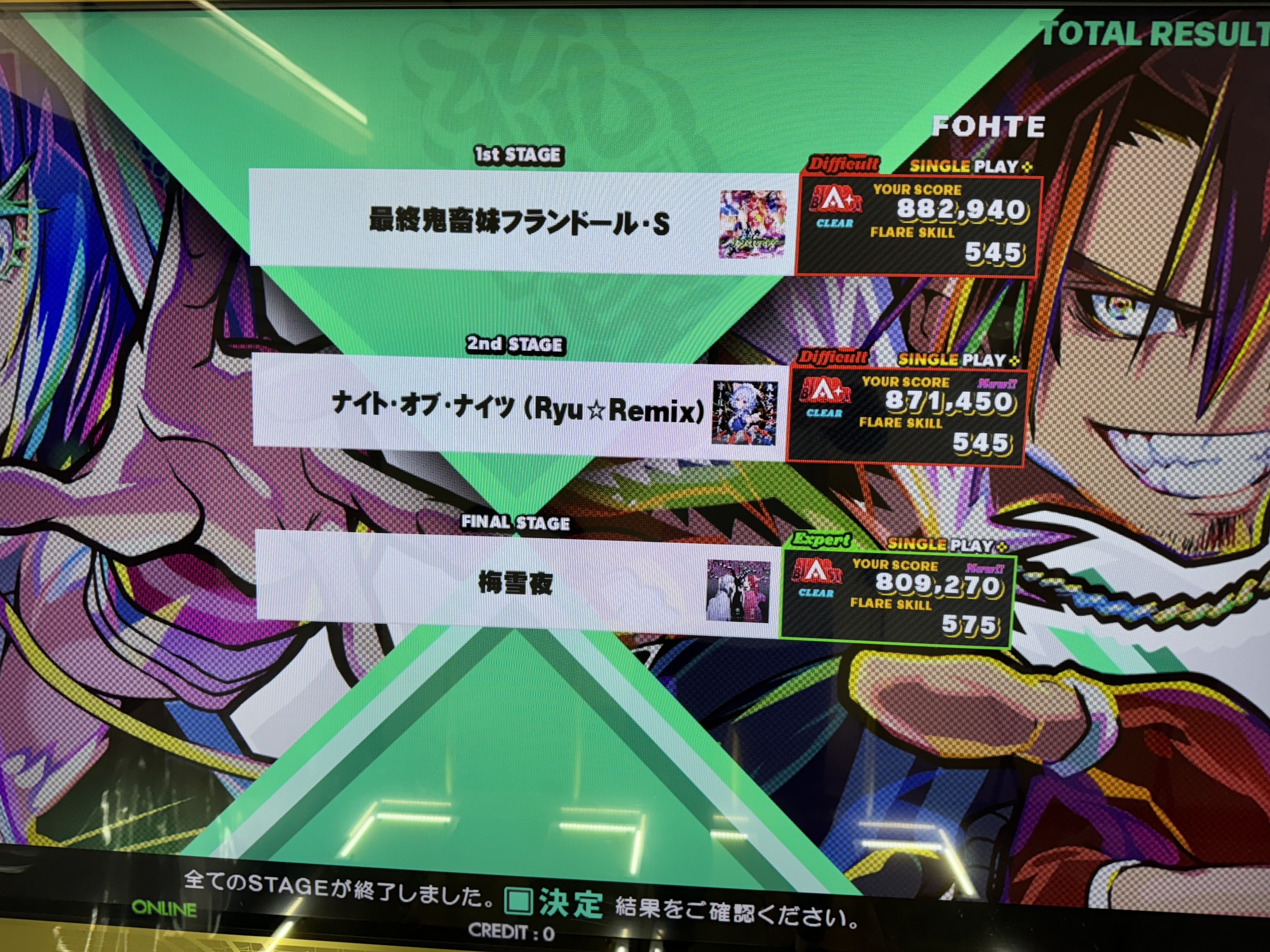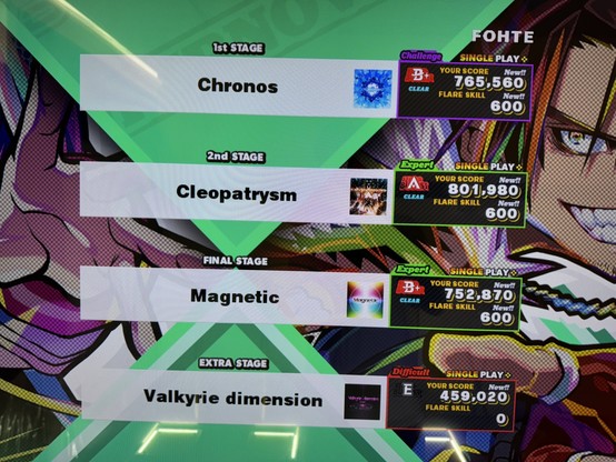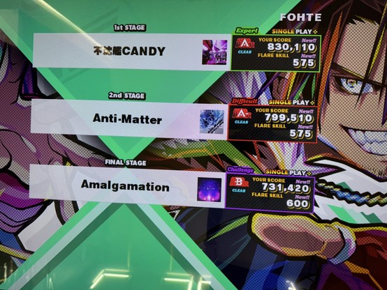 前者については、1 年以上プレーしていない間に環境が変わっていた。筐体数が 2 倍ほどになって、以前のように常に混みすぎて待たないとプレーできず、ただ時間がなくなるだけという悲しい思いが減って嬉しい。とはいえゲーセンからすると稼働率 100 % を維持できなくなったのは厳しい気がしているし、それによっていつか筐体数が減るのではないかと危惧もしている。遊べるときに遊んでおきたい。