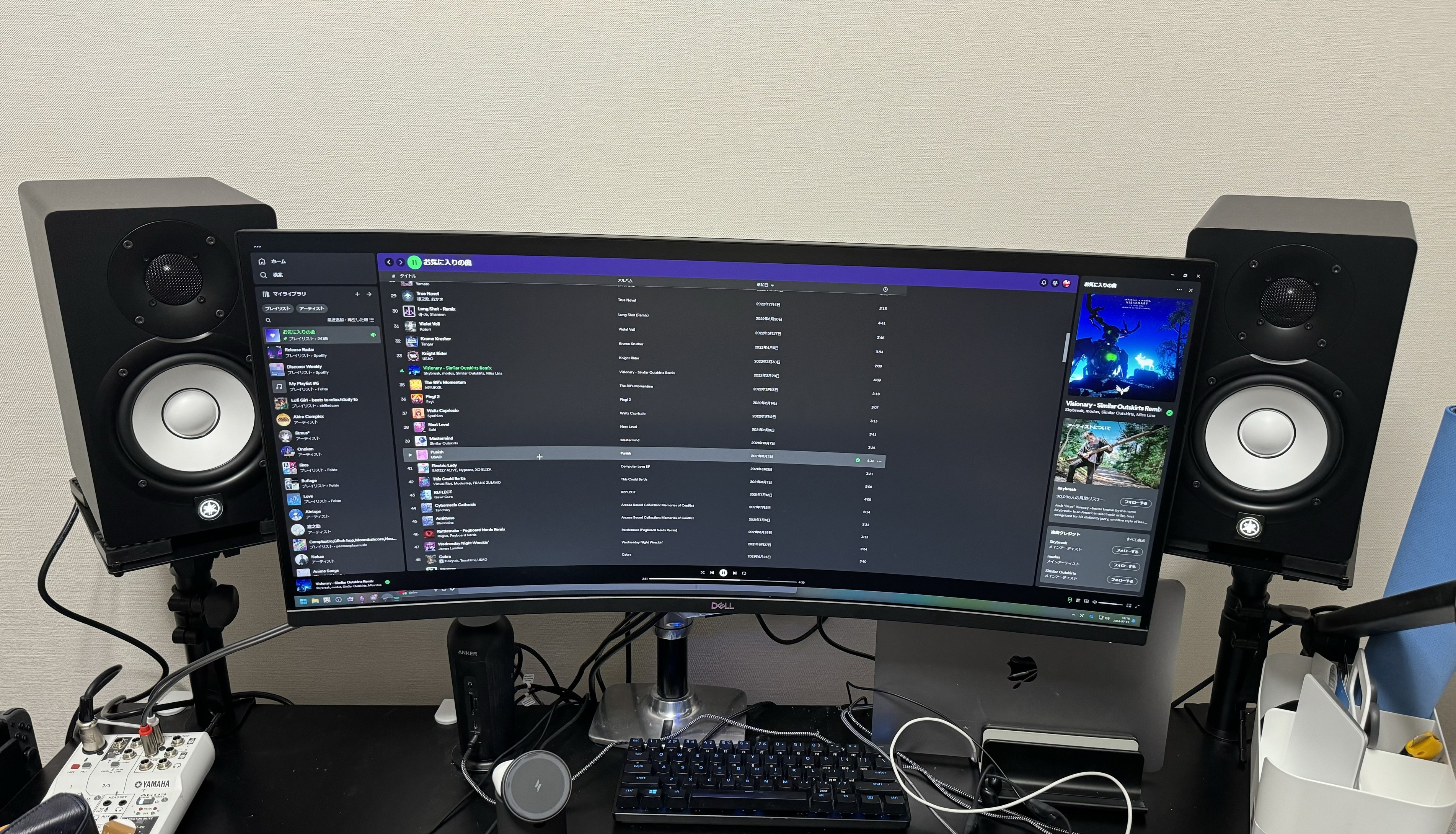 YAMAHA の HS5 というモニタースピーカーを買った。音が良くてかなり満足している。もはやイヤホンが不要になった。ボイスチャット時は反響しないようにイヤホンにしているが、それ以外は基本スピーカーから音を出していて、楽だし音もよくて満足。